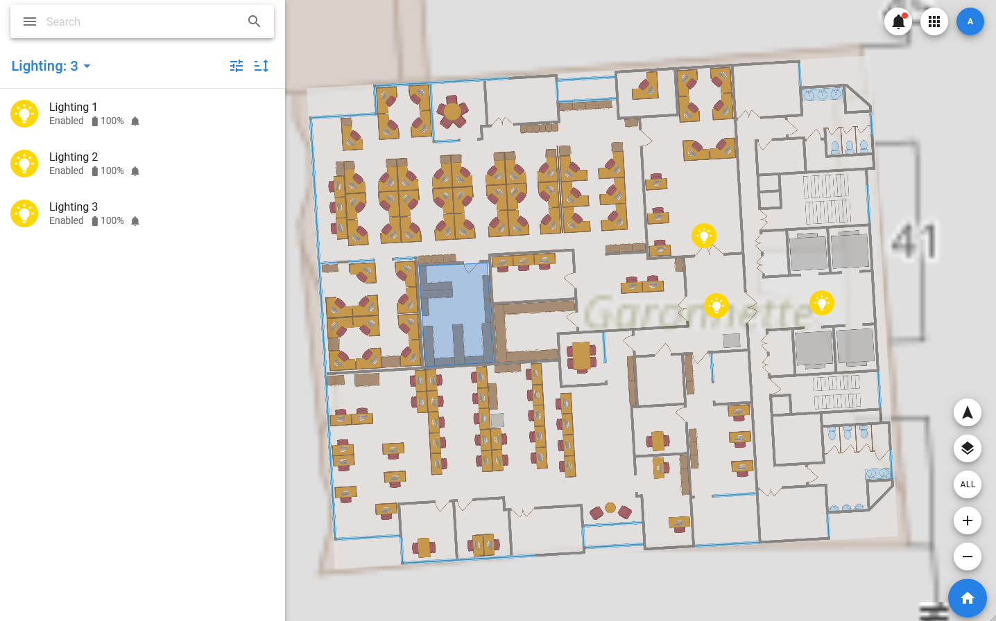 In PixelMonitor, there is such a thing as groups of objects: groups are displayed in the menu and when you select a group in the list and on the map, only those objects that are part of it are displayed. Also, a plan can be linked to the group, then it will be displayed when you select the group.